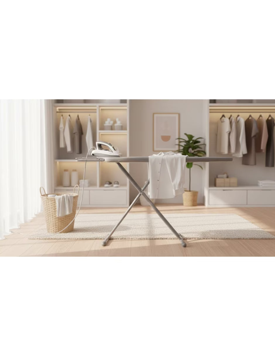 Esta tabla de planchar es la aliada perfecta para quienes buscan funcionalidad sin ocupar demasiado espacio. Con un diseño minimalista y estructural, ofrece la estabilidad necesaria para dejar tus prendas impecables en minutos. Su tamaño la hace ideal para apartamentos, estudios o cualquier hogar que valore la eficiencia.